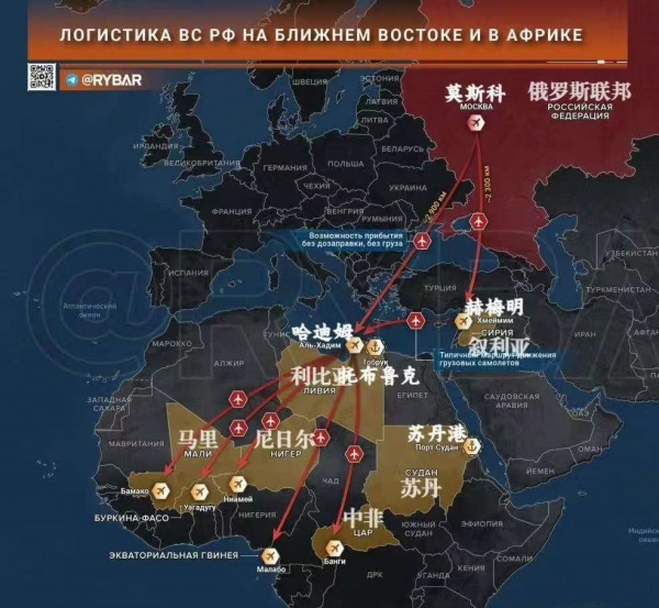 俄罗斯对非洲进行补给的路线,是从本土出发,经土耳其领空,抵达叙利亚,然后飞往非洲;