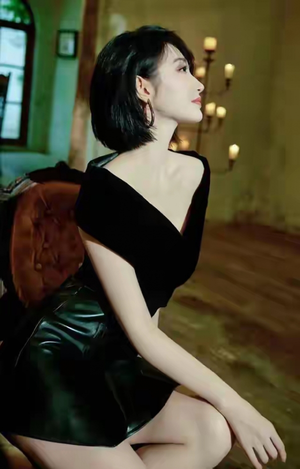 当景甜的一组黑裙写真在社交平台曝光时,评论区瞬间炸了:"这姐的颜值是开了外挂吗?"照片里的她,一袭黑色丝绒露肩上衣搭配亮面皮裙,短发利落又妩媚,在复古烛台的光影下,下颌线清晰如刀刻,锁骨精致得能放硬币,曾经被吐槽"甜系审美"的她,如今硬是把"御姐风"穿出了高级感。