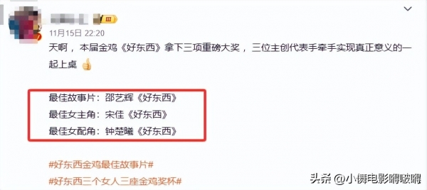 而《好东西》呢,一口气包揽了最佳故事片、最佳女主、最佳女配三大奖。