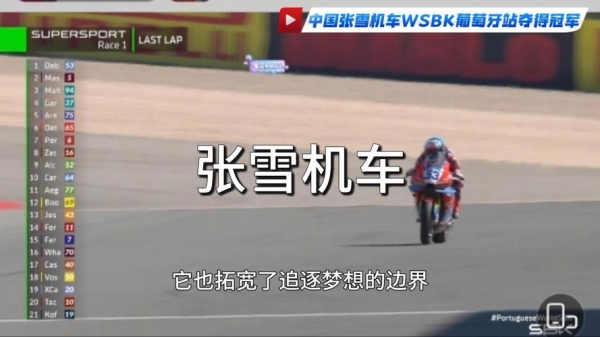 葡萄牙波尔蒂芒赛道,中国摩托车品牌见证历史时刻--来自重庆的张雪机车(ZXMOTO)厂队车手瓦伦丁·德比斯,驾驶820RR-RS赛车,接连斩获世界超级摩托车锦标赛(WSBK)SSP中量级组别两回合冠军。