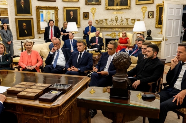 去年8月,欧洲领导人集体到白宫"觐见"特朗普
