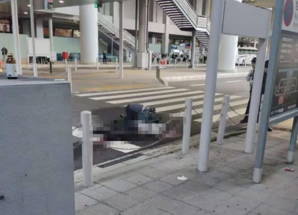 1号航站楼四楼是国际出发层。据警方描述,这名20多岁的中国男子坐在面向出租车和巴士下客区的建筑物外侧的墙上,双腿伸向外侧。