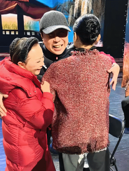 在"乐龄春晚"现场,倪萍看到冯巩,刚想上去拥抱,却被蔡明硬挤进他俩中间,非要自己先和倪萍抱一下!