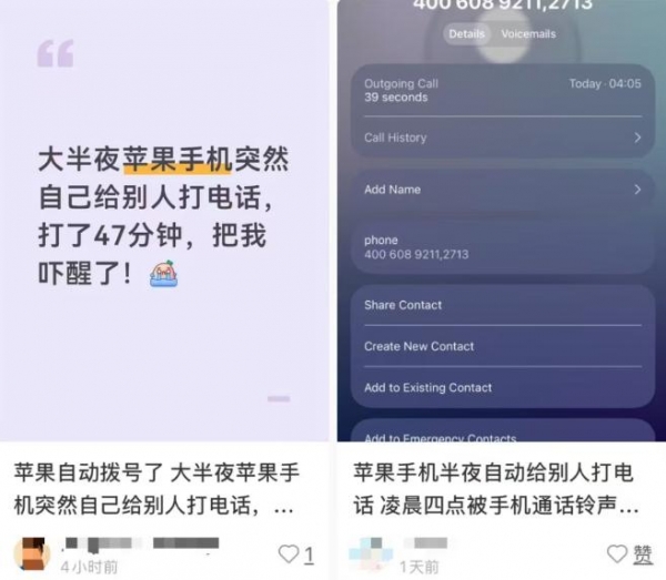 值得注意的是,早在去年11月,便有多位网友发帖称遭遇iPhone半夜自动拨号的情况。