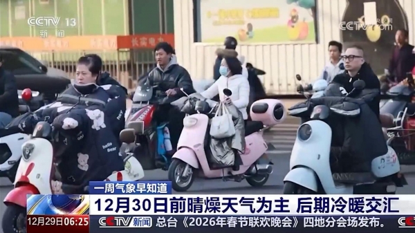 元旦前后将有两股冷空气影响我国,两股冷空气无缝衔接前期强度偏弱,12月30日前晴燥天气为主后期冷暖交汇。