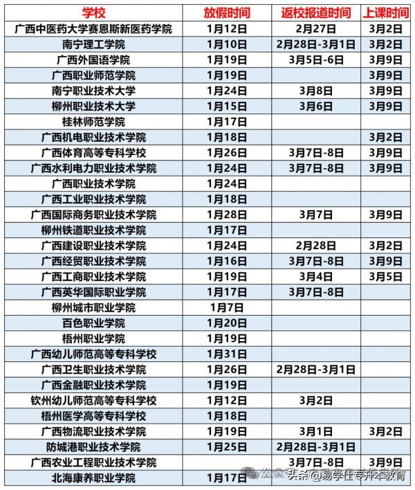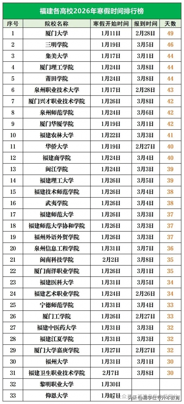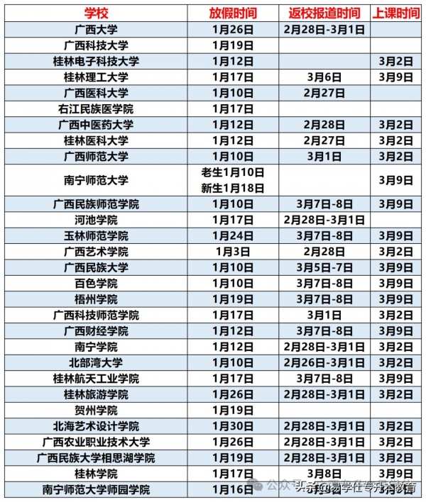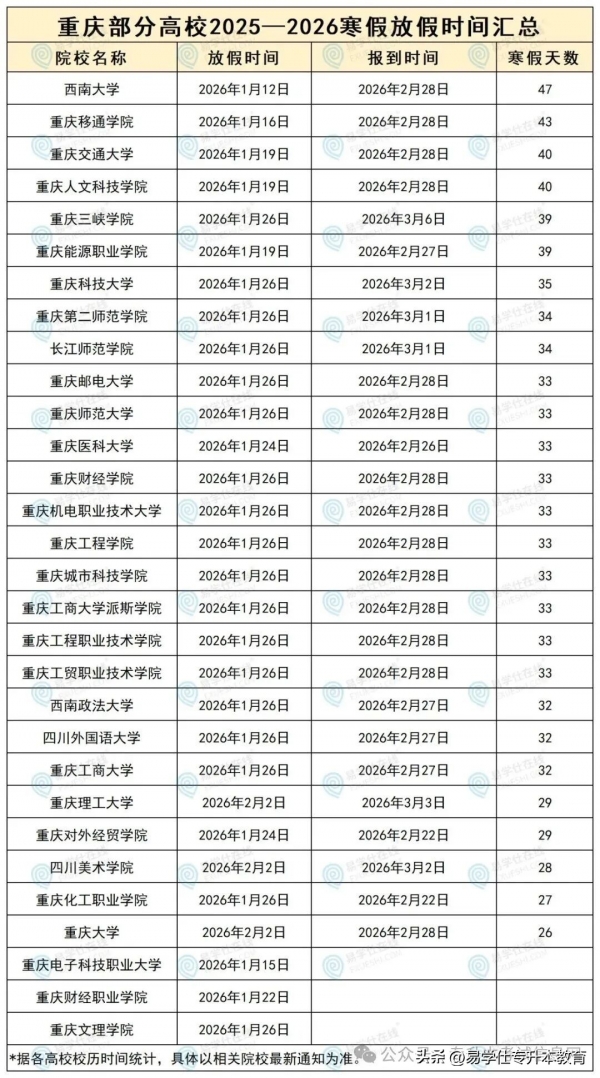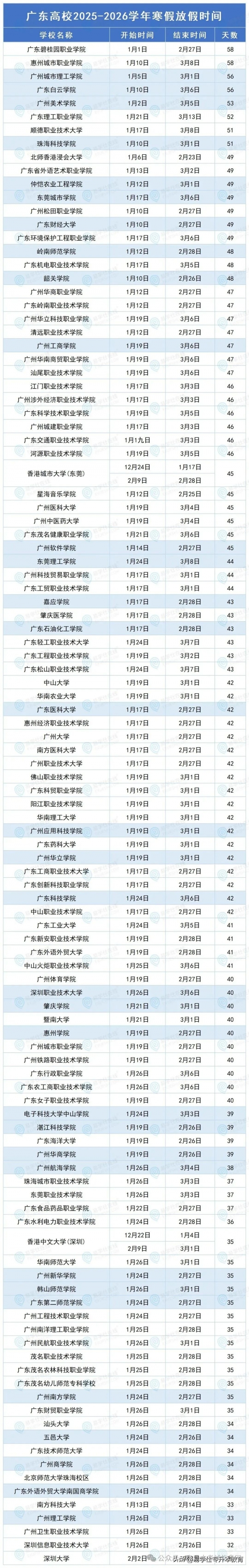 整体看来,今年各院校寒假时长集中在40天左右,大部分院校1月中旬开始放寒假,2月下旬开学返校。
