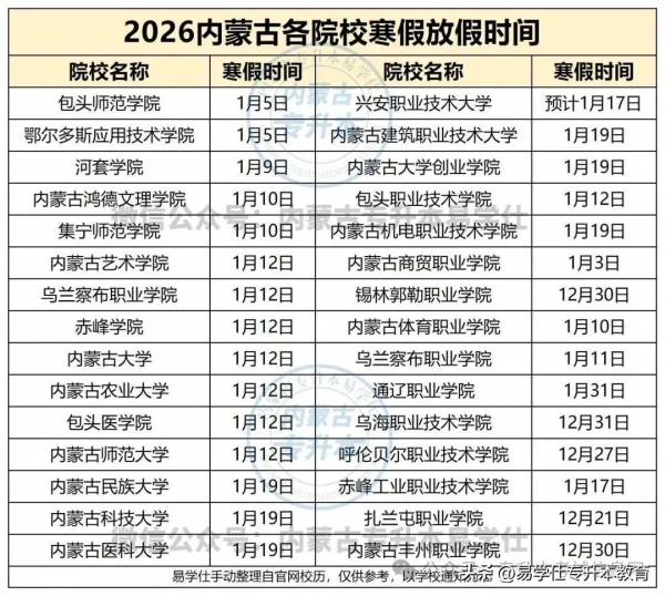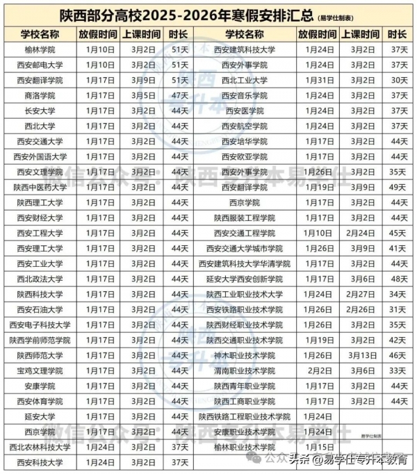 以下是部分省市高校寒假时间汇总(仅供参考,具体以学校通知为准)
