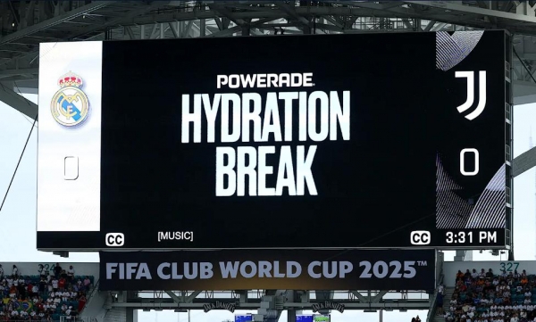 不过在这种情况下,广告资源的销售范围会受到限制,只能出售给国际足联的赞助商。例如在2025年的世俱杯上,补水时间的冠名位是FIFA官方赞助商可口可乐旗下的子品牌--Powerade(动乐),不过当时的露出形式主要是在现场大屏幕,而不是转播画面。