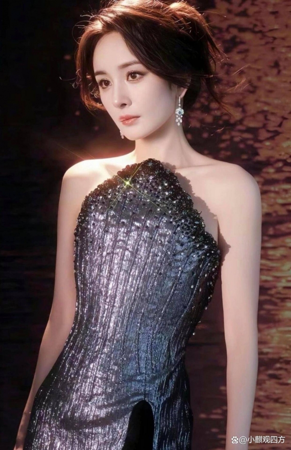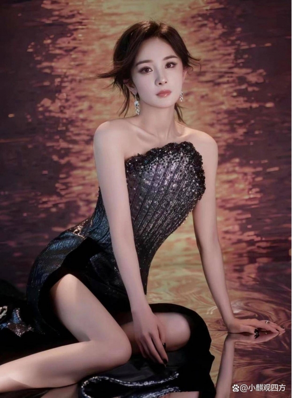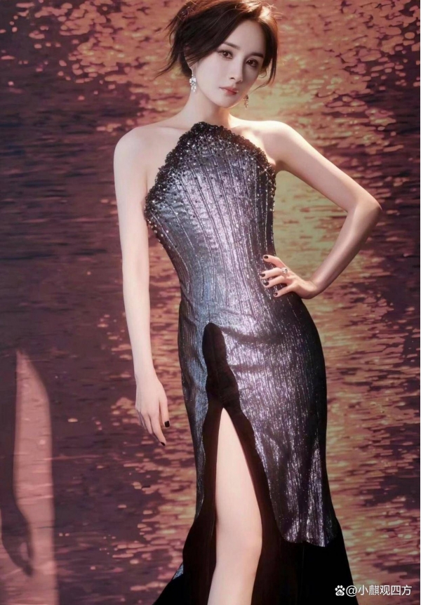 在照片中,杨幂身穿一条极富性感的开叉长裙,白嫩的美腿在裙摆的开叉间若隐若现,流露出无尽的吸引力。她的整体造型既优雅又妩媚,眼中透露出一种引人入胜的故事感,令人不禁多看几眼。