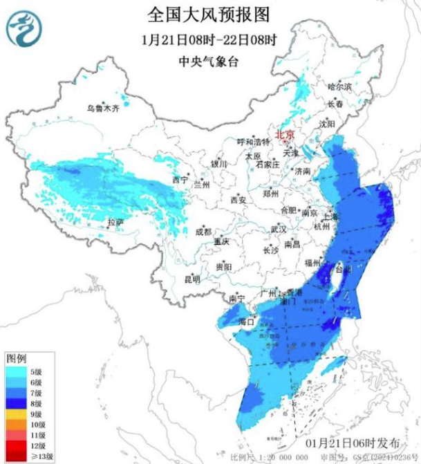 此外,今明两天,在东部和南部海区,风普遍比较大,最大阵风9~10 级。