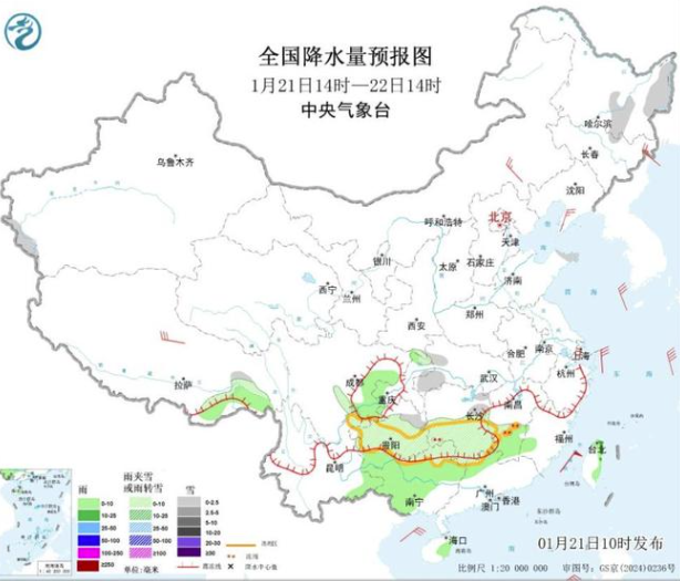 同时在贵州中东部和西北部、湖南中南部、广西北部这里今天还可能会出现冻雨,且冻雨量会达到 3到5毫米,局地会在6毫米以上。