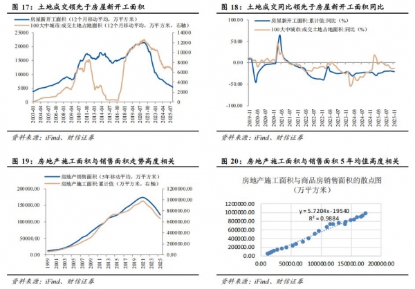 如果是从传统的新开工、竣工视角去推施工面积,停工面积及复工面积往往难以测算准确,加大预测难度。考虑到施工面积本身是一个慢变量,我们直接用销售面积的5年均值与施工面积对比,得到不错的拟合效果。
