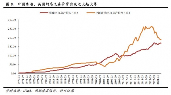 国际经验显示,房价涨跌皆为周期。除了中国以外,其他经济体的房价在经历大涨之后,往往也容易出现不短的调整期。从国际经验来看,根据BIS(国际清算银行)的统计,美国、日本、德国、中国香港等经济体均出现过较长时间的房价调整期。需要注意的是,BIS的数据做了平滑,比实际波动要小,目前只截至2025年2季度,但胜在口径统一,方便对比不同经济体之间的房价走势规律。