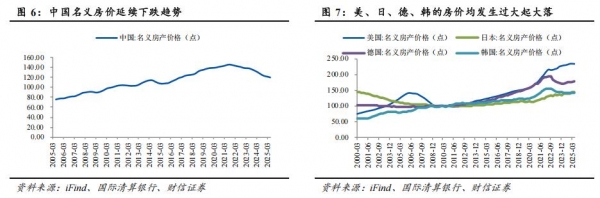 参考可比经验,房价从见顶开始往往调整3-7年不等,调整幅度无明显规律;若遭遇金融危机等重大冲击,房价调整时间更长、幅度更大。以中国香港为例,BIS的数据显示,中国香港曾在2000年前后、2021年底后分别出现过两次房价调整,调整时长分别为42个月、39个月,调整幅度分别为38.7%、27.5%。美国经验显示,从2006年地产泡沫见顶到2011年房价触底,历经63个月,调整幅度达到45.5%。其中,2000年前后中国香港、2008年美国分别遭遇了亚洲金融危机和次贷危机,因此房价调整的幅度更大。根据BIS数据,中国房价从2021年3季度见顶到数据截止的2025年2季度已有45个月,累计下跌17.8%,在时间维度上已经进入探底阶段。