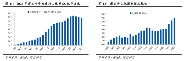 以库存为坐标,中国房地产市场仍处在库存去化的大趋势中。我们用1998年以来历年的房屋新开工面积减去销售面积并累计加总,得到房地产中期库存,该数据从2021年峰值的73亿平方米去化至2024年的68亿平方米,但去化周期从2021年的4.1年上升至2024年的6.9年,说明中国地产去库道阻且长。从百大城市的狭义库存数据可以进一步看出,二线城市、三线城市的库存矛盾更大。2025年10月,百城中的一线城市、二线城市、三线城市商品住宅可售面积均有所见顶回落,但是存销比却都继续上升,10月一线城市商品住宅存销比上行至17.1个月,相对稳健;但是二线城市、三线城市商品住宅存销比分别上升至22.6个月、40.3个月,前者接近历史高点,后两者屡创历史新高。