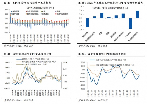 ②在政策支持下,家具、家电、旅行服务等为代表的其他核心CPI相关分项有望延续涨价趋势。中央经济工作会议提出,"深入实施提振消费专项行动,制定实施城乡居民增收计划。扩大优质商品和服务供给","把促进经济稳定增长、物价合理回升作为货币政策的重要考量",我们预计政策支持下,未来生活用品及服务、衣着、医疗保健、教育文化和娱乐等有望维持涨价趋势,带动2026核心CPI同比增速中枢继续维持在1%以上。