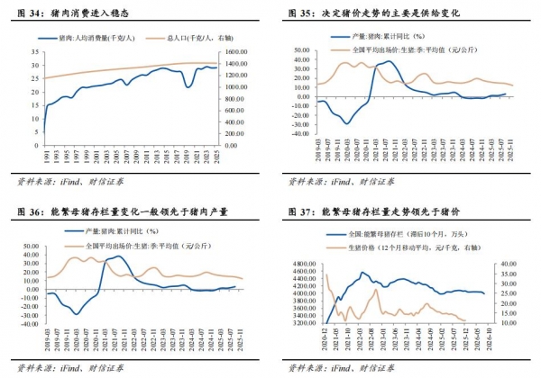 供给是决定猪价的核心因素,核心是能繁母猪存栏量的走势。与房地产类似,猪肉消费需求逐步进入稳态,一是总人口逐步达峰;二是人均猪肉消费量也进入到稳态。因此,决定猪价走势的主要是供给变化。养殖规律显示,从能繁母猪存栏量传导到商品猪出栏一般需要10个月左右时间,所以决定猪价的核心变量是能繁母猪存栏量。