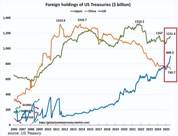 但是随着美债规模的不断膨胀,中国却一直在减少美债的持有量,根据公开数据显示,7月份,中国出售了260亿美元的美国政府债券。