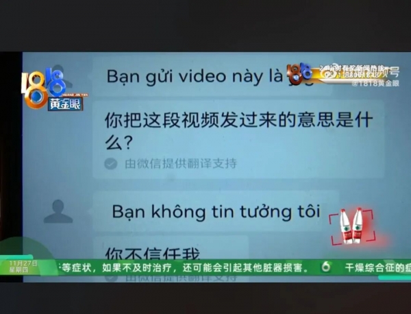 记者把微信聊天记录往前翻,发现9月15号那天,小美发出一段越南文字。自动翻译成中文是:明天我们要回中国,对吗?当时胡师傅回复说,后天再回杭州,他还鼓励小美:你努力学习中文,如果跟姐姐那样会说,你就可以在中国上班。当时小美的回复是"慢慢来"。