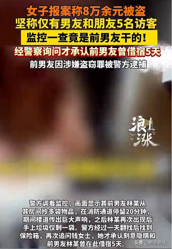 民警拿着监控再次找到钱女士,铁证面前,钱女士脸一下子红了,这才支支吾吾说出实话:前男友林某其实在她家借宿了5天,她怕现男友知道了闹矛盾,才故意隐瞒不说。
