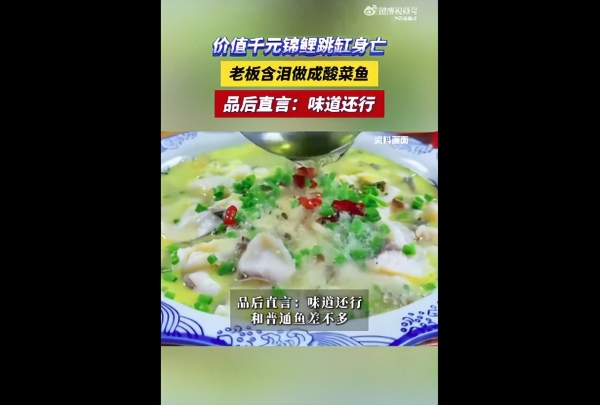 2月4日(采访时间),河南南阳。价值千元锦鲤跳缸身亡,主人不舍丢弃,"含泪"做成酸菜鱼,品后直言:味道还行,和普通鱼差不多。
