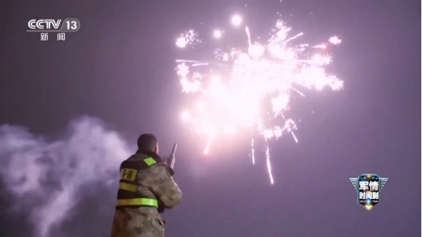 一个多小时后,成功完成处置的战机接续返航,夜色之中,机场上空的驱鸟弹,宛若绚丽的烟花,为这个紧张的夜晚增添了一抹别样的光景。