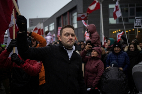 当地时间1月17日,格陵兰岛自治政府总理尼尔森参加岛上的抗议活动。 IC Photo