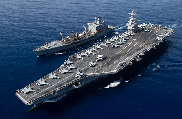 美国海军官员称,"福特"号航母正在全天候执行任务。但一名美军官员表示,五角大楼已意识到航母接近部署能力极限。他透露,"乔治·H·W·布什"号航母正准备前往中东,可能将接替"福特"号执行任务。