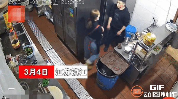 3月3日江苏镇江,一名女子在餐馆卖力接待客人,厨房的丈夫却只想打烊,视频中,女子当场气炸上前踢打丈夫,丈夫站在一旁不言不语,女子表示,丈夫认为身体比较重要,自己认为买奶粉的钱都没有,挣钱重要。
