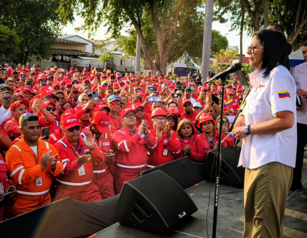 她在拉克鲁斯港向油气工人发表讲话:"美国频频对委内瑞拉的政治人物指手画脚,我们受够了。"