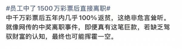 "中1500万彩票离职事件是真是假"