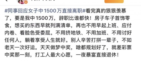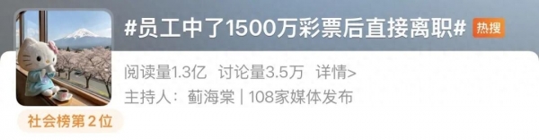 "员工中了1500万彩票后直接离职"
