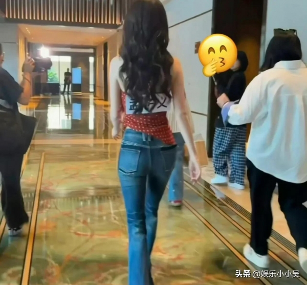 可从侧面路透图能清楚看到,孟子义的腰比这块名牌还要细,转身的时候名牌几乎能把她的腰全盖住。