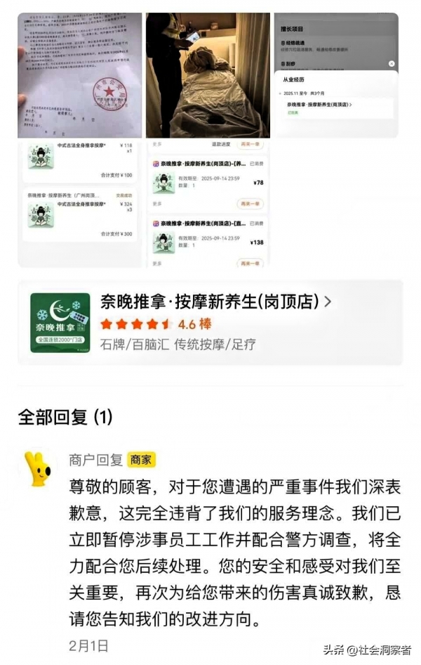 "花钱买放松,结果遇上这种糟心事儿!"2026年1月底,广州天河区奈晚推拿岗顶店的一则丑闻在网上闹得沸沸扬扬,不光让单个门店的服务乱象暴露无遗,更把连锁健康品牌的安全漏洞彻底撕开。