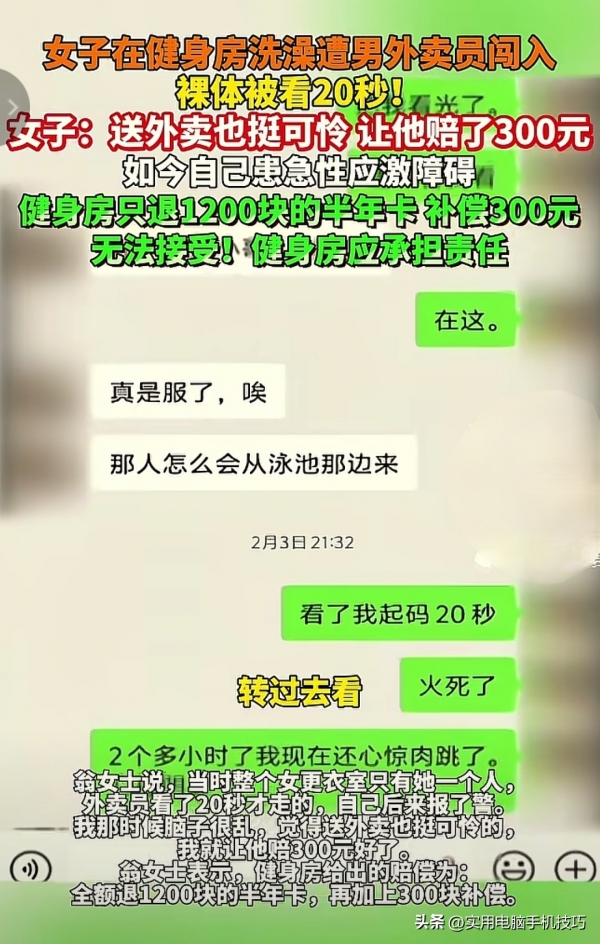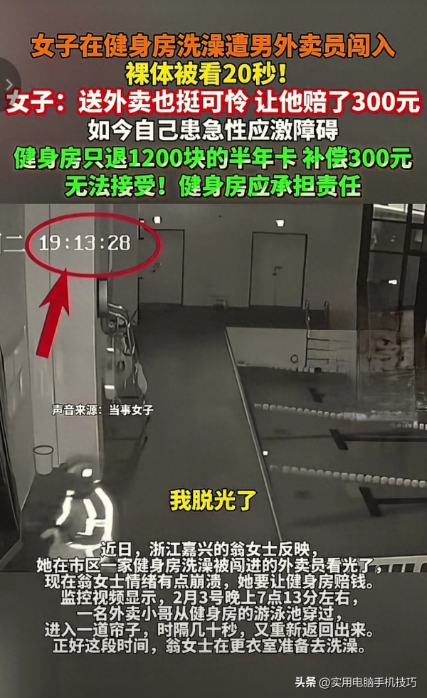 说白了,如果健身房能做好基本的安全防护,锁好无关通道、安排人员巡逻、明确区域标识,外卖员根本不可能进入女浴室,这场意外完全可以避免。