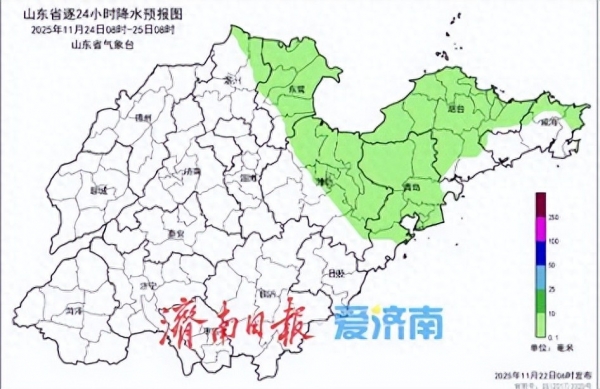 11月22日,进入冬天的第二个节气--小雪。小雪节气充满了人们对雪的期盼,那么,山东省哪些地方会在此时迎来降雪呢?从最新的预报来看,预计,22-23日山东全省天气晴转多云;24-25日,受较强冷空气影响,山东省大部地区气温下降4-8°C,滨州、东营、潍坊和半岛地区有小雨雪。