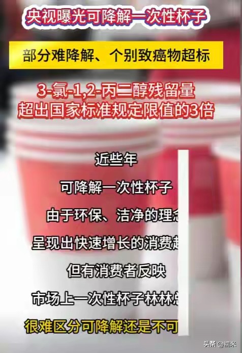 家里全扔了,再也不用一次性杯。可降解全是骗局,求监管卡死标准!