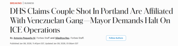 顺带一提,美国海关与边境保护局近日还在波特兰枪击了两个他们声称是委内瑞拉黑帮的移民,而波特兰的执法部门对此毫不知情,直到受伤的两人报警寻求警察帮助。前几天还为了美国绑架马杜罗而欢庆的委内瑞拉移民可能没想明白,他们跟马杜罗没有区别,都是可以拿来刷战绩的目标。当然,明尼苏达发生的事情告诉大家,不只是委内瑞拉"润人",每个美国人都可能是刷战绩的目标。
