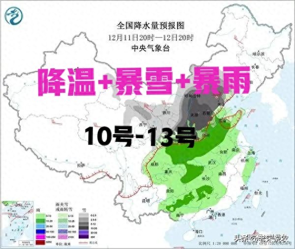 今年的天气也很应景,这不,中央气象台预计,大雪过后,后天10日至13日,将有新一股寒潮级的强冷空自西向东影响我国大部地区,这股冷空气威力不可小看,是寒潮级的"实力派″,将会给我国中东部大部分地区带来骤烈的降温天气。
