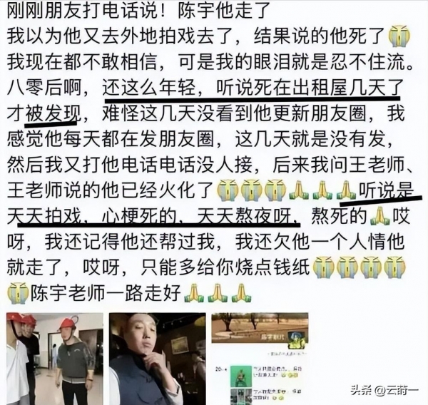 陈宇这个名字太普通了,普通到如果不是因为这场死亡,大众根本不会将目光投射到这个已经在光影世界里摸爬滚打多年的灵魂身上。