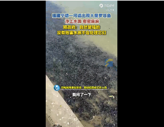 近日,福建宁德,一河道出现大量罗非鱼,浮出水面密密麻麻,十分瘆人。