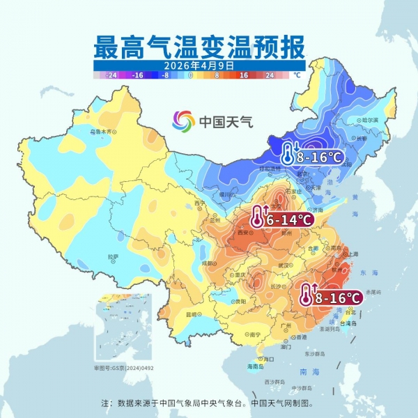 不过4月10日后,随着降雨增多,江南一带气温又会回落至常年同期水平。