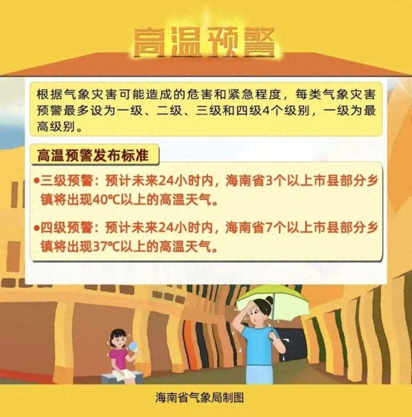 随着高温天气加剧,海南省气象局今日(9日)上午发布高温三级预警: