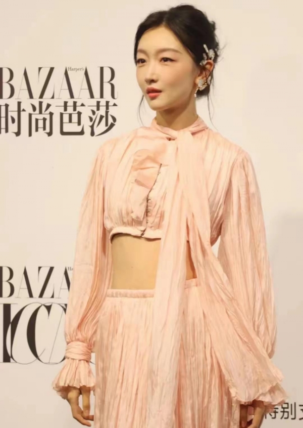 三金影后周冬雨这次的造型依旧是毁誉参半,一身粉色泡泡袖礼服,看着非常粉嫩,很有少女的感觉,妆容也算是中规中矩,据说这身礼服还是顶奢的定制款,非常昂贵,虽然周冬雨的红毯造型备受争议,但她的咖位在那里摆着,哪怕他的红毯造型不是最出彩的,但是人气和热度都不可小觑。