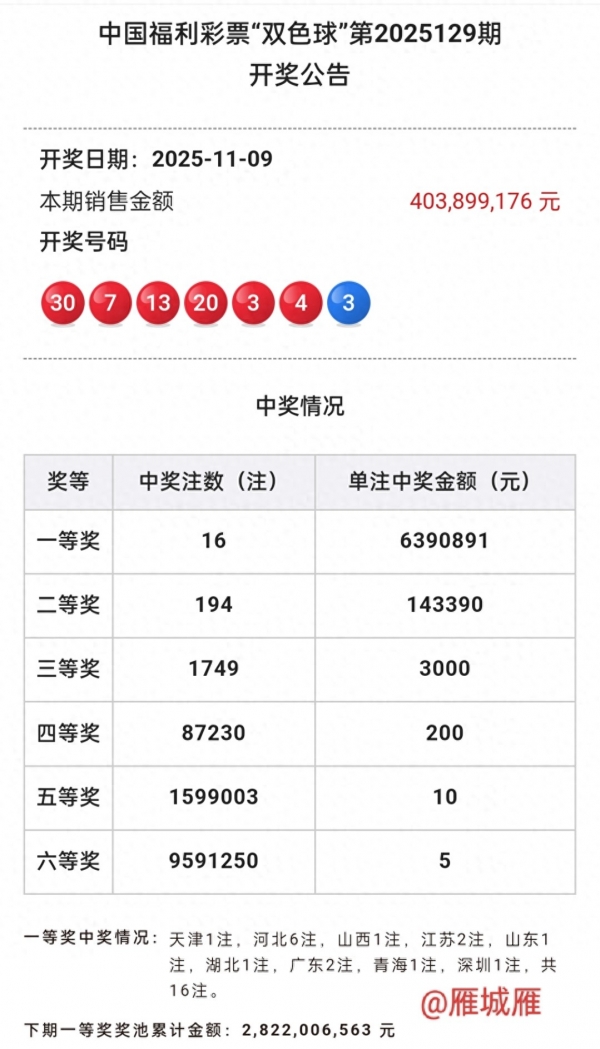 2025年11月9号星期天晚上,福彩双色球游戏第25129期如期开奖,本期的总销售额为4.03亿余元,目前双色球的奖池总资金为28.4亿余元,下面让我们一起来看看本期的具体开奖情况。