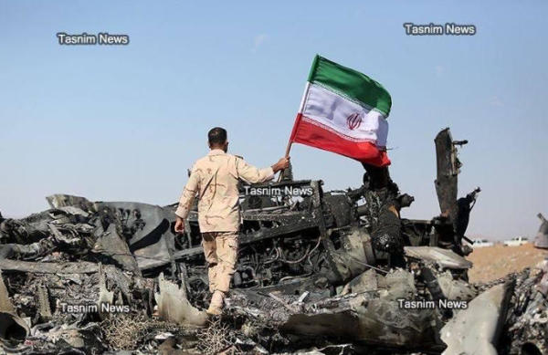 4月6日,伊朗士兵在美军战机残骸前竖起伊朗国旗 伊朗媒体