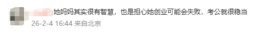 不少网友理解母亲担忧,指出创业风险大、缺乏可持续保障。