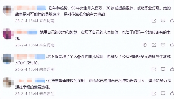 对此网友赞叹:年纪轻轻实现财务自由、活出自我,羡慕了。