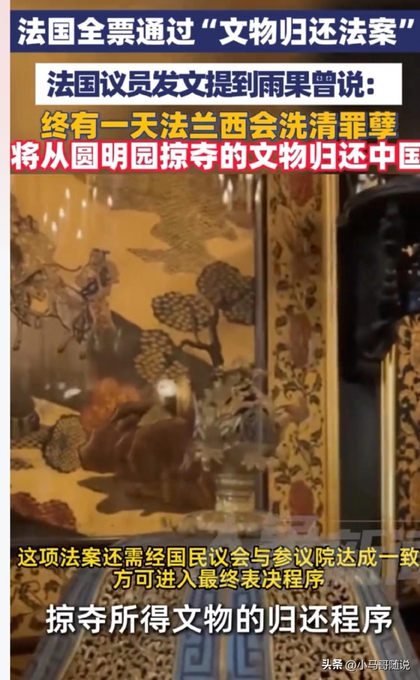 一个昔日殖民大国,以全票通过的姿态迈出了正视历史的关键一步。这不禁让人追问:那些同样在侵略战争中大肆掠夺中国文物的国家,何时才能拿出同样的诚意?