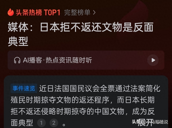文物是一个民族的历史记忆,是文化的根脉所在。法国用全票通过的姿态,向世界展示了正视历史的勇气。而日本的拒不归还,则将其对历史问题的暧昧态度暴露无遗。正如雨果所言,归还"不义之财"是法兰西"脱胎换骨"的体现。那么,日本何时才能拿出同样的觉悟,让漂泊百年的中华瑰宝真正踏上归途?